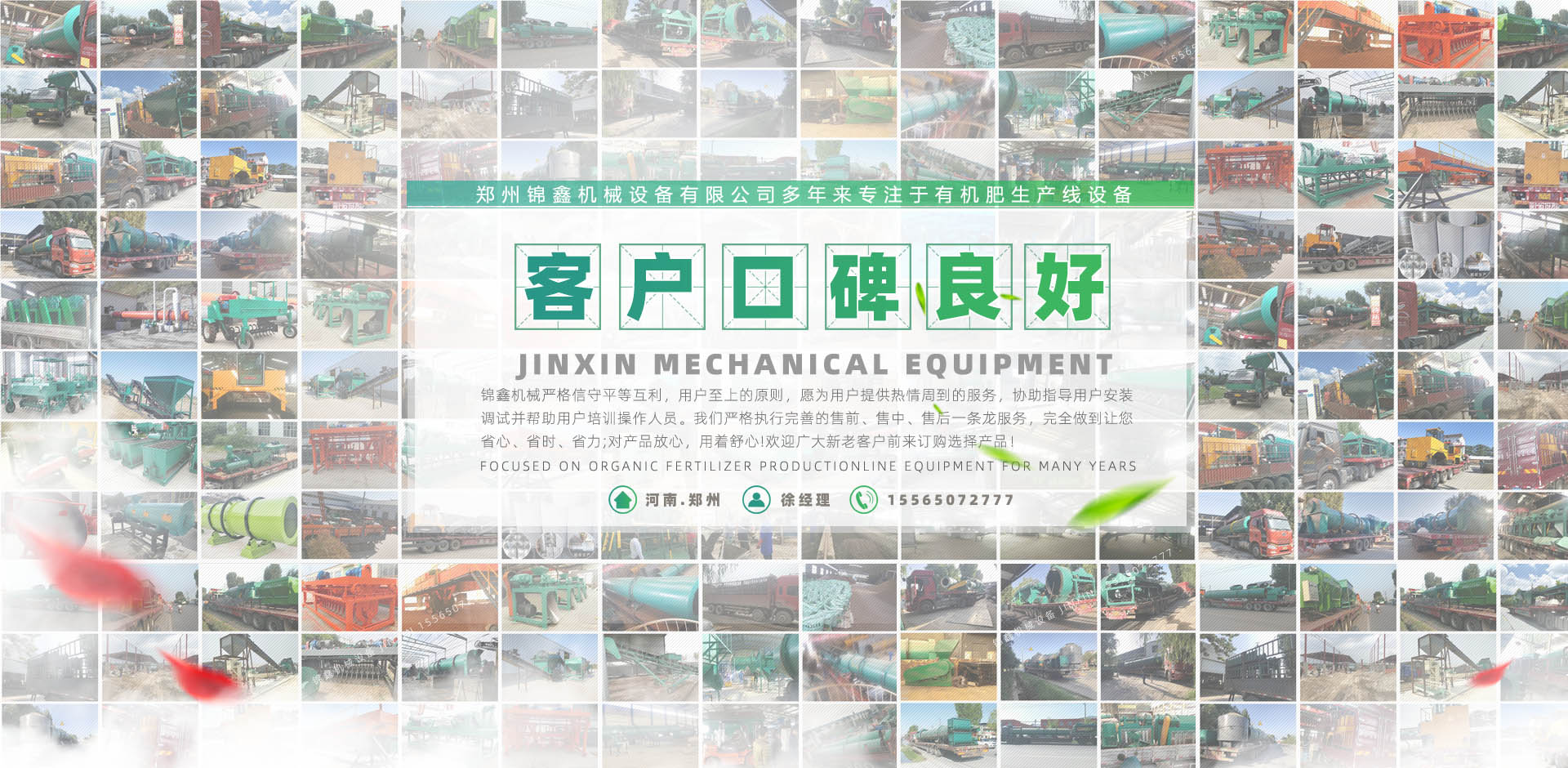 鄭州錦鑫機(jī)械設(shè)備有限公司,位于機(jī)械之鄉(xiāng)的河南省滎陽市,它交通便利,連霍高速公路、鄭州西南繞城高速、隴海鐵路、鄭西客運(yùn)專線貫穿全境,南水北調(diào)、西氣東輸在這里交匯。   公司有技術(shù)團(tuán)隊(duì)為企業(yè)生產(chǎn)肥料加工設(shè)備,有的合作伙伴,科學(xué)、規(guī)范的客戶培訓(xùn)體系;還有積極健康的企業(yè)文化,不斷創(chuàng)新的管理體制和經(jīng)營模式和日益完備的經(jīng)銷網(wǎng)絡(luò)。它交通便利,310國道、連霍高速公路、鄭州西南繞城高速、隴海鐵路、鄭西客運(yùn)專線貫穿全境,南水北調(diào)、西氣東輸在這里交匯。   鄭州錦鑫機(jī)械設(shè)備有限公司是生產(chǎn)有機(jī)肥設(shè)備機(jī)械的企業(yè),產(chǎn)品:有機(jī)肥設(shè)備,有機(jī)肥造粒機(jī),復(fù)合肥設(shè)備,復(fù)合肥造粒機(jī),新型有機(jī)肥攪齒造粒機(jī),對輥擠壓造粒機(jī),有機(jī)肥生產(chǎn)線,有機(jī)肥加工設(shè)備,復(fù)合肥生產(chǎn)設(shè)備,有機(jī)肥造粒設(shè)備,雞糞烘干機(jī),轉(zhuǎn)鼓造粒機(jī),bb肥設(shè)備等遠(yuǎn)銷各地,品質(zhì)深受肯定! ...